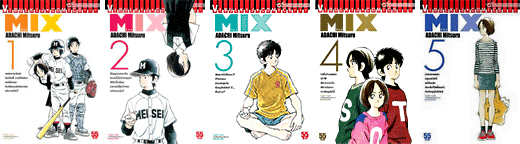 [1] Adachi Mitsuru. มิกซ์ (Mix). วิบูลย์กิจคอมมิกส์, เล่ม 1-14, 16-17, 2556-2564. (ต้นฉบับ 2012).